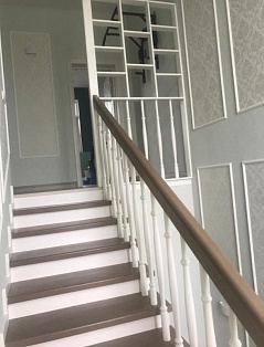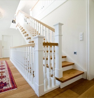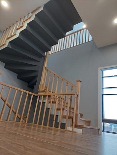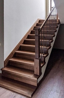 Преимущества Максимальный комфорт: площадка позволяет сделать паузу при подъеме и удобна для переноса мебели. Высокая твердость: бук по плотности сопоставим с дубом, что защищает ступени от вмятин и царапин. Безопасность: самая стабильная конфигурация, подходящая для детей и пожилых людей. Бесшумность: однородная структура бука в сочетании с жестким каркасом исключает скрипы. Эстетичный вид: благородный розоватый оттенок дерева придает интерьеру теплоту.