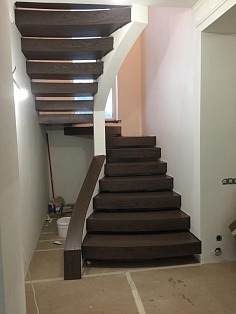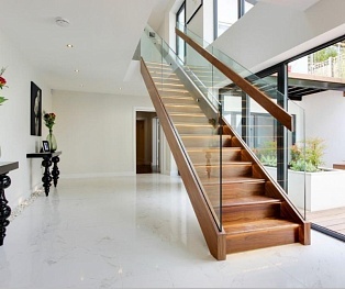 Характеристики Тип: на косоурах (одинарный центральный или двойной боковой) Материал: массив бука (категория А/Экстра) Толщина косоура: 40–60 мм (в зависимости от нагрузки) Покрытие: износостойкий лак, масло-воск или глубокая тонировка Ограждения: дерево, закаленное стекло или металлические балясины