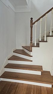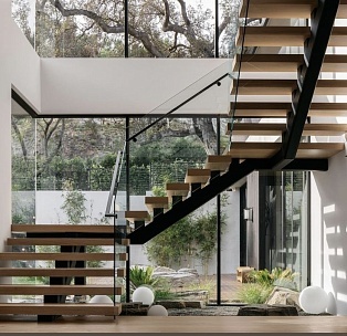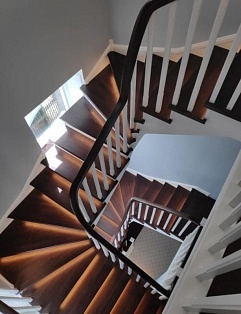 Преимущества Безопасность: автоматическая подсветка ступеней ночью. Эстетика: эффектный вид и акцент на текстуре дерева. Прочность: массив дуба устойчив к истиранию и нагрузкам. Статус: эксклюзивное исполнение для элитного жилья. Долговечность: срок службы конструкции более 50 лет.